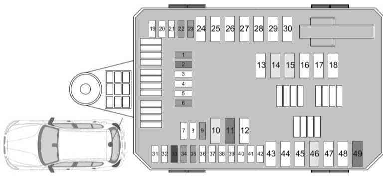 Skrzynka bezpieczników i przekaźników w bagażniku