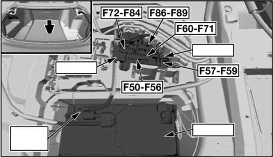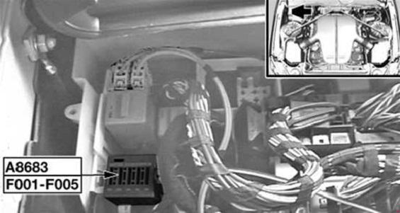BMW serii 6 (E63 i E64) – schemat skrzynki bezpieczników – komora silnika