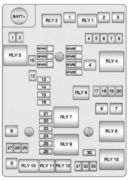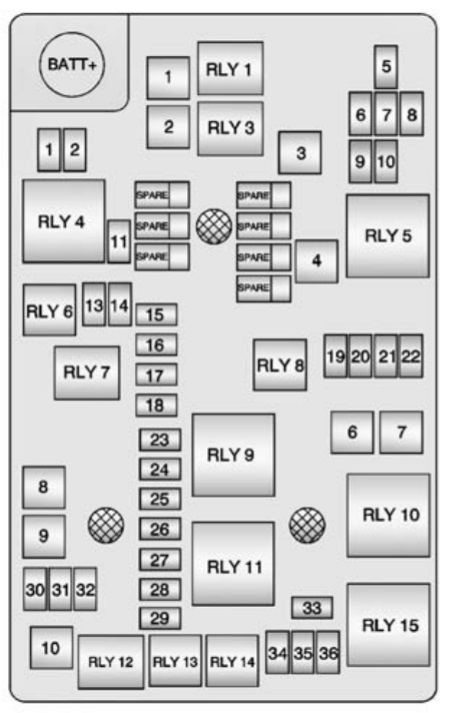 Schemat skrzynek bezpieczników i przekaźników – Chevrolet Sonic, Aveo