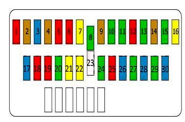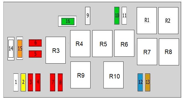 Światła hamowania, moduł sterujący centralnego zamka, regulacja zewnętrznego lusterka wstecznego, elektryczne szyby, moduł sterujący elektrycznego podnośnika szyb, lampka ostrzegawcza alternatora, moduł ochrony przed zderzeniami, przekaźnik opóźnienia oświetlenia wnętrza |