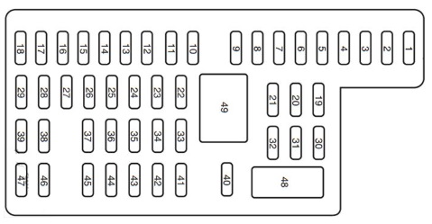 Panel bezpieczników przedziału pasażerskiego – uruchomienie/uruchomienie |