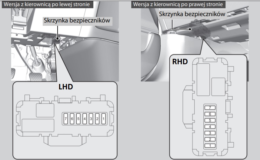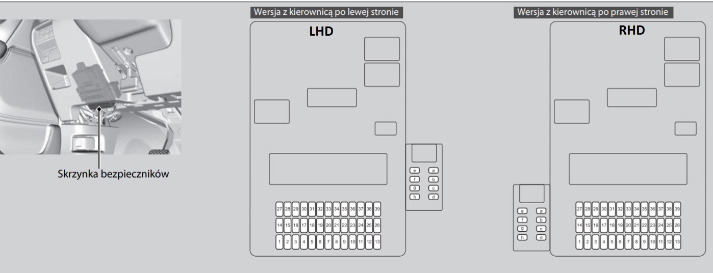 Schematy skrzynek bezpieczników i przekaźników – Honda CR-V