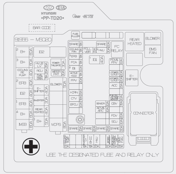 Wentylacja przedniego powietrza/podgrzewacz siedzenia, Moduł sterujący siedzenia, jednostka główna AMP, A/V i nawigacji, panel sterowania klimatyzacji, nagrzewnica PTC, moduł sterowania klimatyzacji, elektrochromowe lusterko, ogrzewanie tylnego siedzenia |