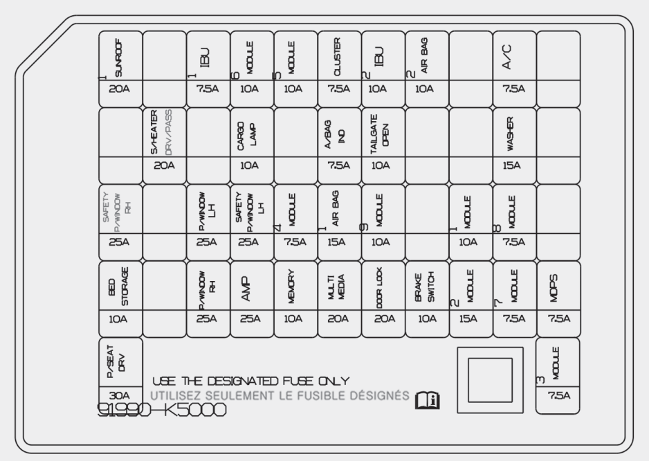 AMP, przełącznik sterowania klimatyzacją, moduł sterowania klimatyzacją, lusterko elektrochromowe, złącze łącza danych, jednostka główna audio, A/V i nawigacji, przednia ładowarka bezprzewodowa, moduł sterujący przedniego siedzenia wentylacyjnego, moduł sterujący podgrzewania przednich siedzeń |
