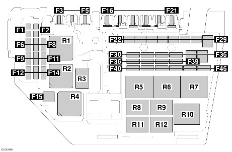 Skrzynka bezpieczników w przestrzeni bagażowej. |