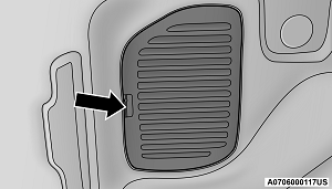 Aby uzyskać dostęp do bezpieczników, zdejmij drzwiczki dostępu z lewego tylnego panelu tylnej przestrzeni ładunkowej.