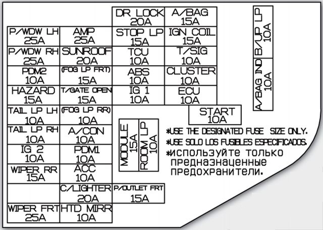 Moduł monitorowania ciśnienia w oponach, konwerter ISG Low DC – DC (Audio/AMP), przełącznik podgrzewania fotela kierowcy/pasażera, podgrzewacz fotela kierowcy/pasażera , przełącznik ISG, lusterko elektrochromowe, inwertor pompy olejowej, przełącznik świateł stopu, przekaźnik HAC |