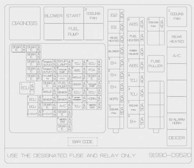 Blok PCB (Bezpiecznik – ABS 3, VACUUM PUMP 2, ECU 6, AEB, TCU 2, MODULE) |