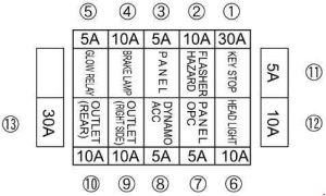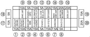Kubota B3150, B3150SU – schemat skrzynki bezpieczników – CAB