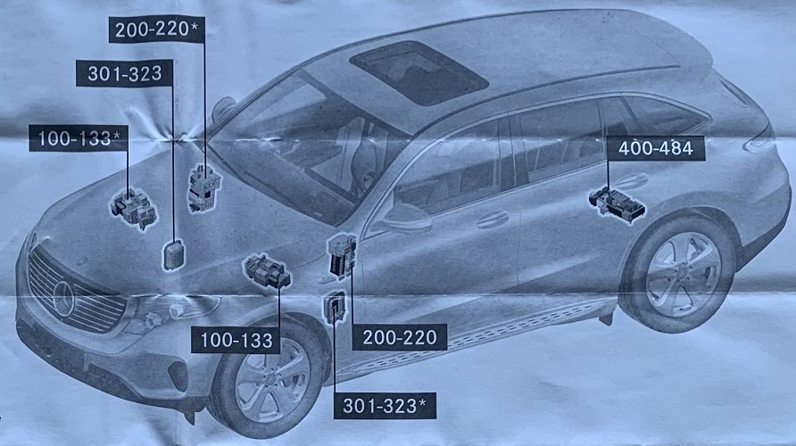Schematy skrzynek bezpieczników i przekaźników – Mercedes-Benz EQC
