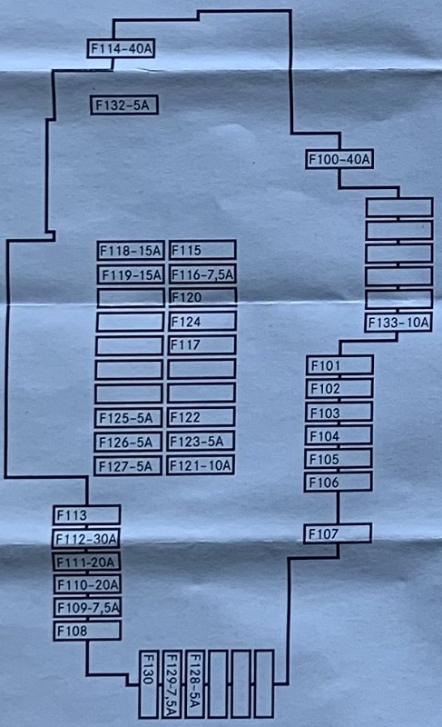 Skrzynka bezpieczników w przedziale pasażerskim (przestrzeń na nogi)