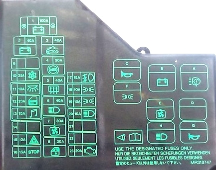 Schematy skrzynek bezpieczników i przekaźników – Mitsubishi Carisma