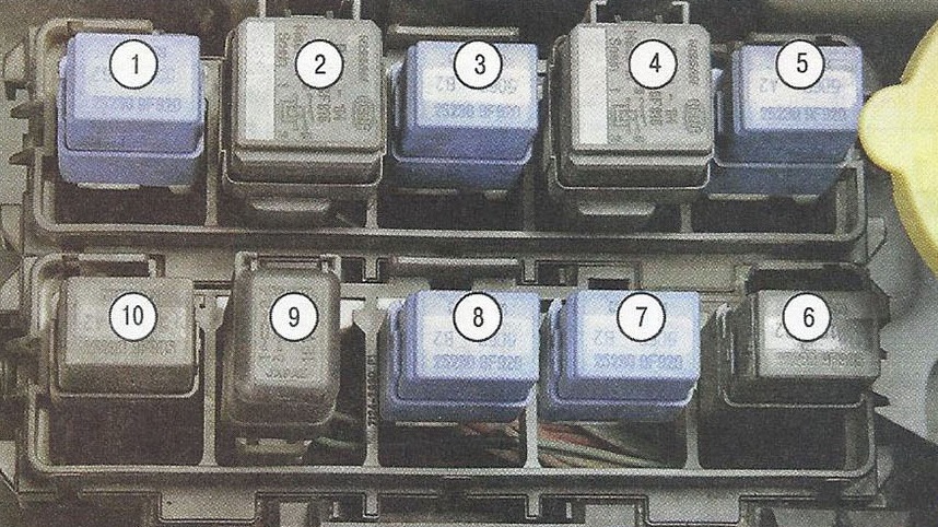 Przekaźnik z przodu panelu skrzynki bezpieczników
