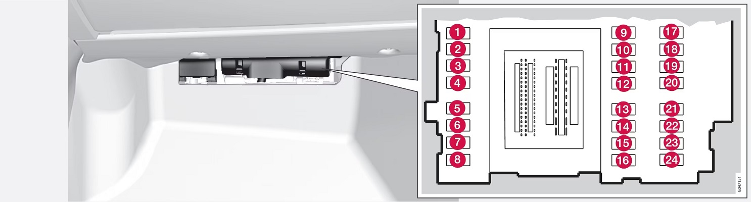 Bezpiecznik główny centralki elektrycznej w bagażniku |
